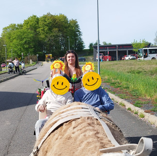 🐴 Des résidents heureux de profiter d’une balade en escargoline.